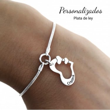 Pulsera plata de ley 925 personalizada,cadena cola de topo de 17 cm largo + cadena adaptable de 2.5 cm con motivo corazón calado nombres personalizados