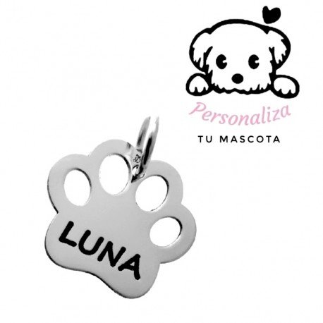 Colgante plata de ley 925 huellla de perro de 15mm con nombre personalizado