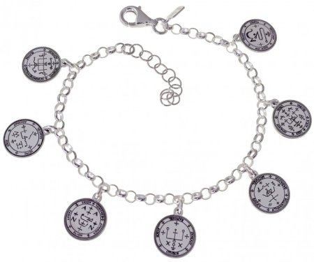 Pulsera plata de ley 925 cadena de rolo de 17 cm largo + cadena adaptable de 3 cm con discos (10mm) doble cara con sello e inicial de los siete Arcángeles.