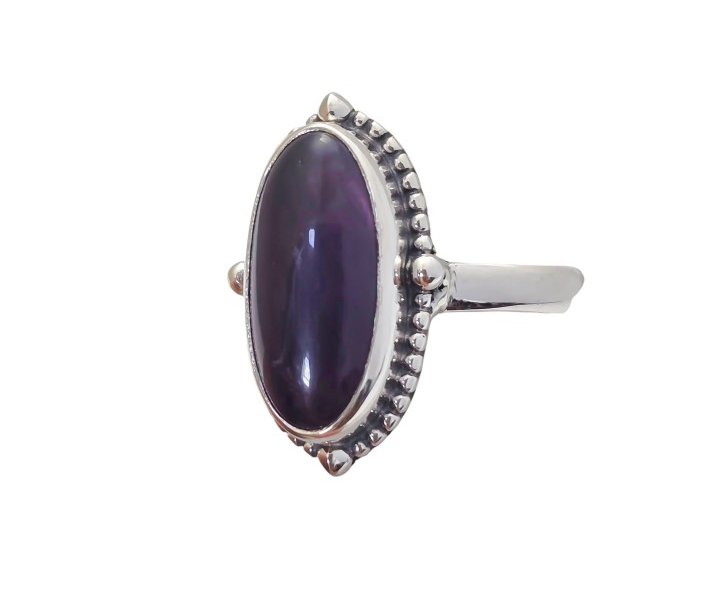 Sortija plata de ley 925 (21mm x 11mm) oxidada con piedra natural (16mm x 8mm).