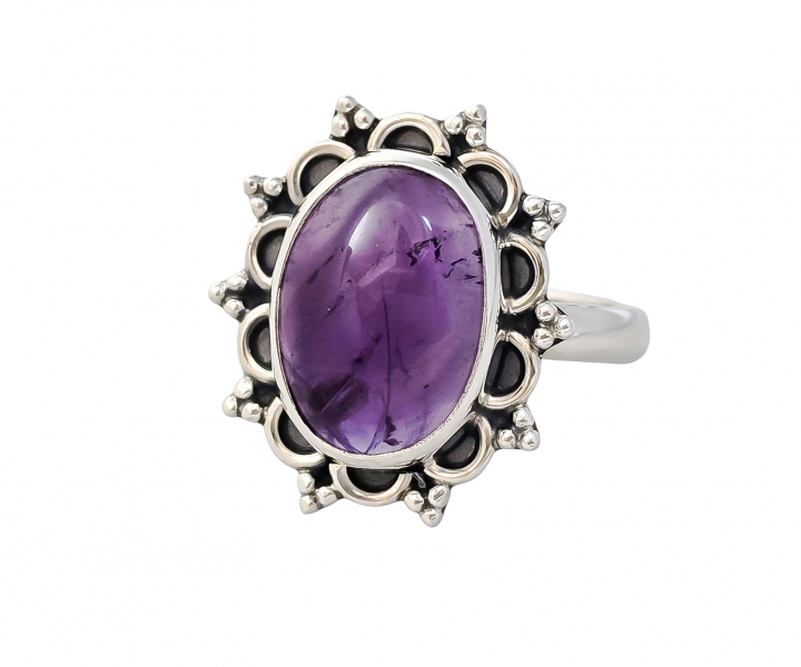 Sortija plata de ley 925 (19mm x 17mm) con dibujo oxidado y piedra natural (13mm x 9mm)