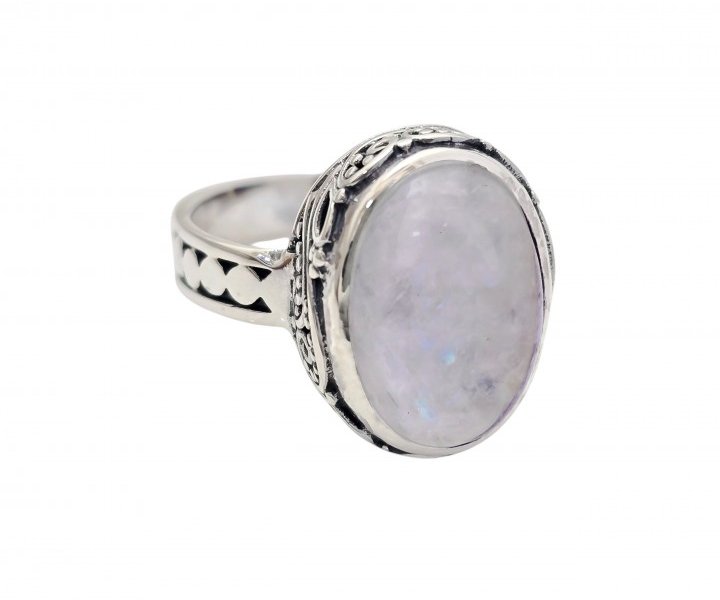 Sortija plata de ley 925 (16mm x 13mm) dibujo oxidado con piedra natural (13mm x 9mm). Piedra luna