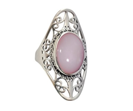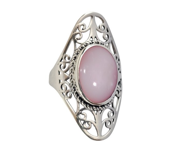 Sortija plata de ley 925 (32mm x 17mm) piedra natural (13mm x 10mm). Cuarzo rosa