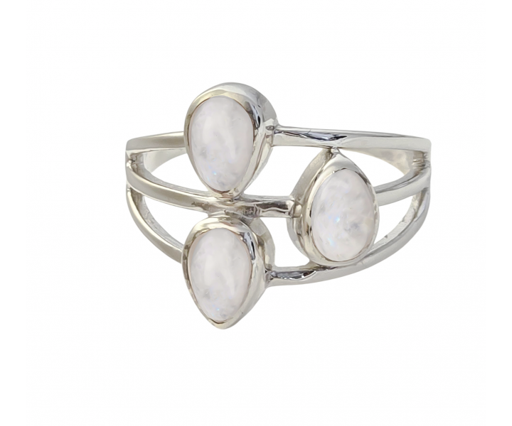 Sortija plata de ley 925 (16mm ancho sortija) con piedra natural (6mm x 4mm). Piedra luna