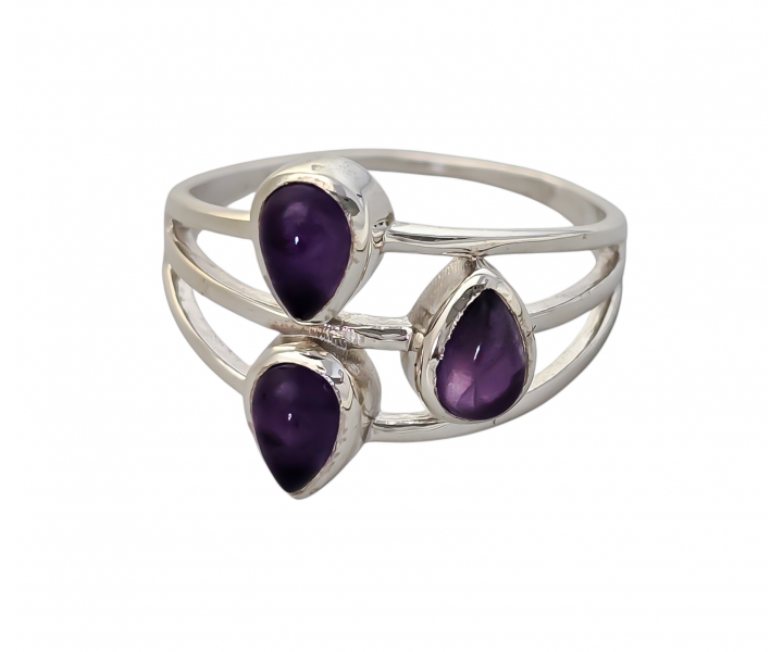 Sortija plata de ley 925 (16mm ancho sortija) con piedra natural (6mm x 4mm). Amatista