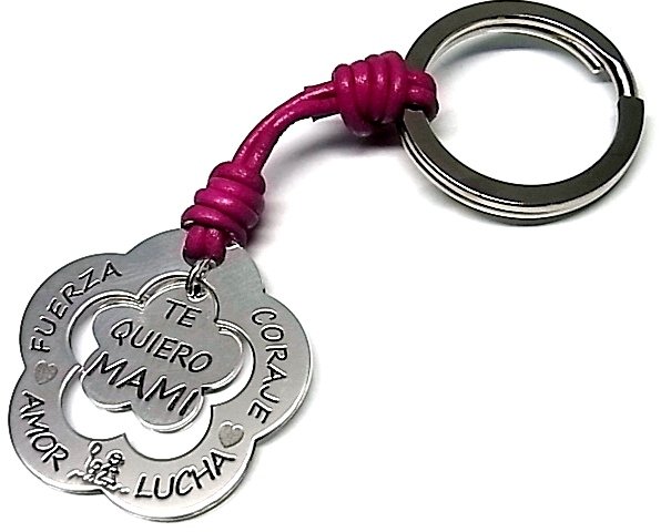llavero en plata de ley te quiero mami de 3.4cm x3.4cm con flor interior