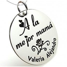 colgante en plata de ley personalizado en placa de 27mm a la mejor mama. Los productos personalizados tienen un plazo de entrega de 20 dias habiles