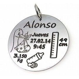 colgante en plata de ley nacimiento personalizado de 30mm. Los productos personalizados tienen un plazo de entrega de 20 dias habiles