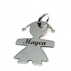 colgante en plata de ley niña personalizado de 1.5cm largo. Los productos personalizados tienen un plazo de entrega de 20 dias habiles