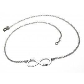 Gargantilla plata de ley 925 motivo infinito de 3 cm Mamá te quiero con cadena rolo de 41 cm largo.